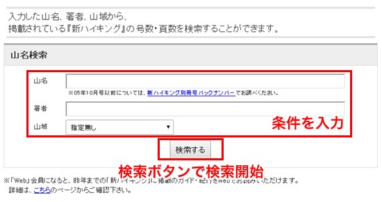 「Web会員制」に登録できるのは新ハイキングクラブ会員の方に限ります。